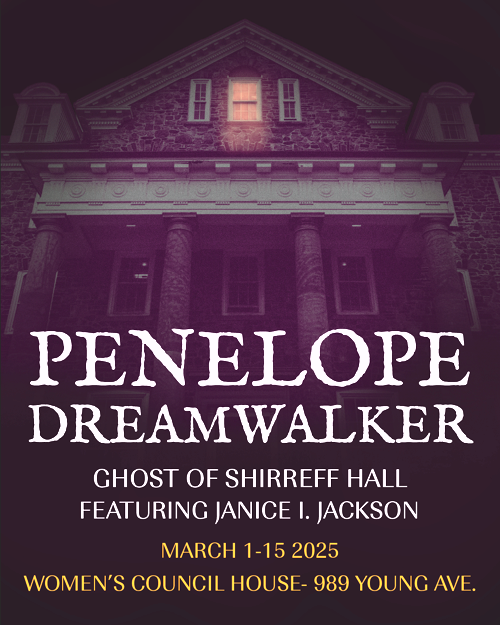 Penelope Dreamwalker: Ghost of Shirreff Hall will be performed March 1–4, 6–8, 13–15, 2026 at 7:30 p.m. at the Women’s Council House, Halifax. There are a maximum of  25 seats per show. Adults $30 • Students/Seniors $25. Some of the works briefly touch on suicidal ideation and relationship‑based harm, which may be distressing. Tickets here.